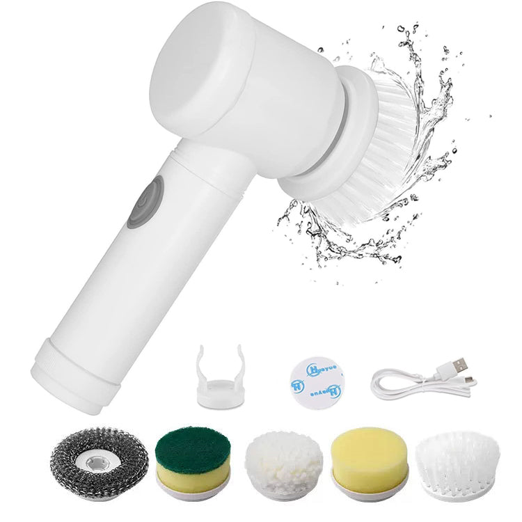 Scrubio™ zastępuje kilka tradycyjnych narzędzi do sprzątania. Dzięki 5 różnym końcówkom możesz czyścić naczynia, garnki, patelnie, blaty kuchenne i łazienkowe płytki. Jedno urządzenie, wiele zastosowań, co pozwala zaoszczędzić miejsce i pieniądze